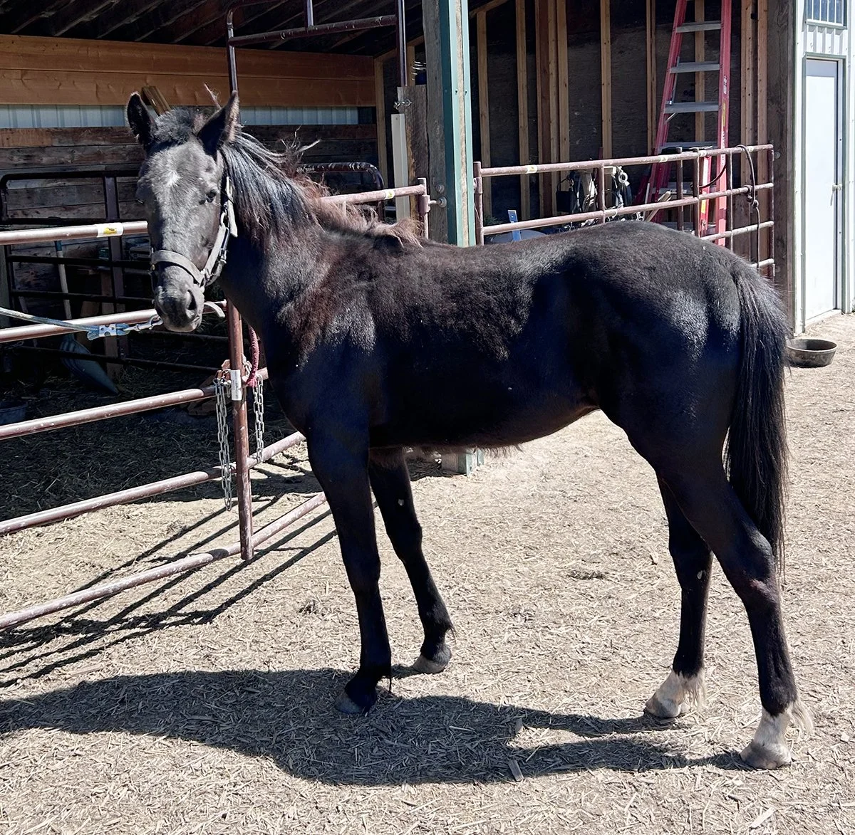 StandardbredStar is a jet black, grade Standardbred gelding that we raised. A fun fact is that Star is a twin, and we have chosen to retain his sister. Star shows a lot of nice movement. He is super smart and eager to please. He is halter broke and he has been handled quite a bit. This young guy is ready for his next big adventure. Consigned by Jake Miller.